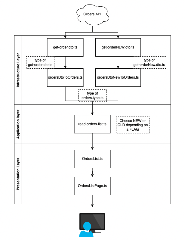 read-orders-lists.ts에서 flag에 따라 어떤 API를 쓸지 결정하게 하여 해결할 수 있다. 즉, 새로운 flow를 사용하는 것을 알려주는 flag가 보이면 사용할 mapper가 달라져 처리를 할 수 있게 되는 것이다.