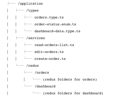 앱에서 비즈니스 로직 적용을 담당하는 레이어이다. Presentaiton 레이어에 존재하는 모듈과 상호 작용하고, Infrastructure 레이어에 존재하는 서비스들을 호출한다.