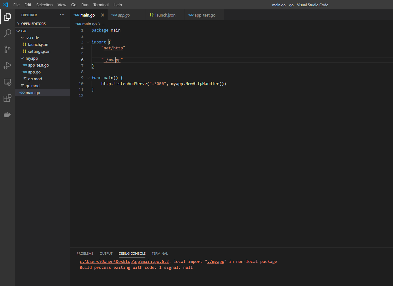 I am new to go and working on an example code that I want to localize. In the original main.go import statement it was: import ( "log" "net/http" "github.com/f...