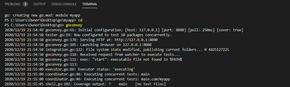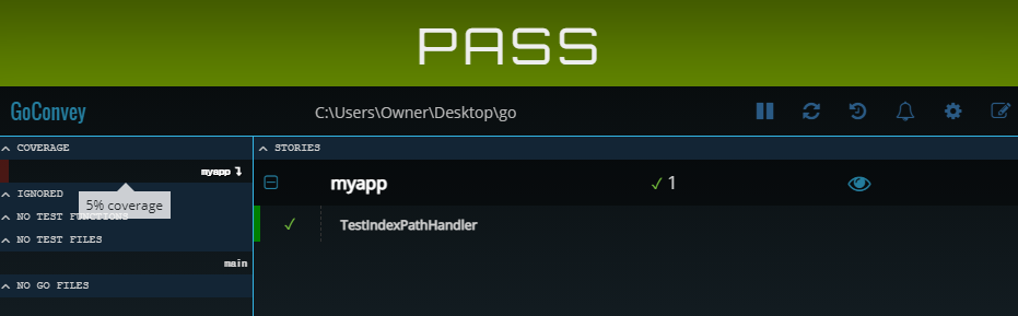 설치 후 테스트를 하고자 하는 폴더에 goconvey를 입력하여 실행한다.