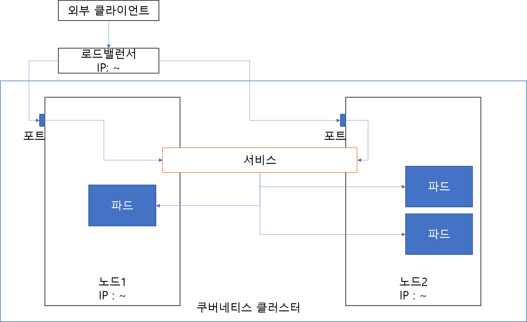 각 클러스터 노드는 노드 자체에서 포트를 열고 해당 포트로 연결된 트래픽을 서비스로 전달.